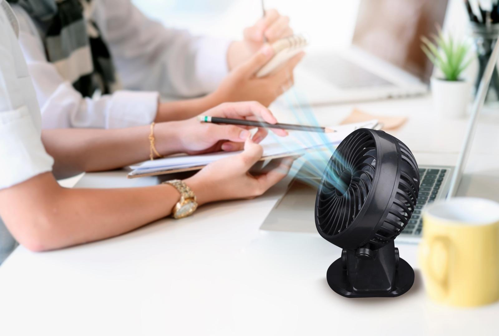 Ventilator zwart oplaadbaar met knijper.