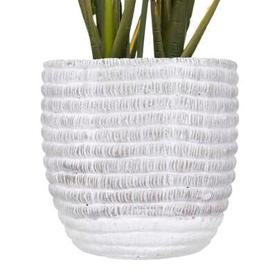 Levensechte Vredelelie plant in een zwaar cementen pot.