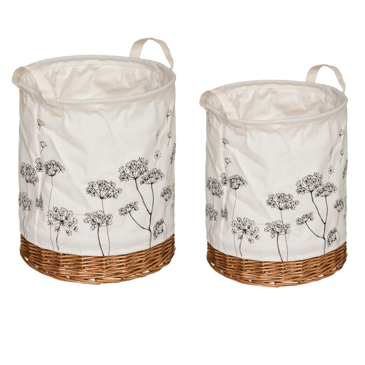 Prachtige opbergmanden met een rieten onderkant. De mand is in verstevigde stof.