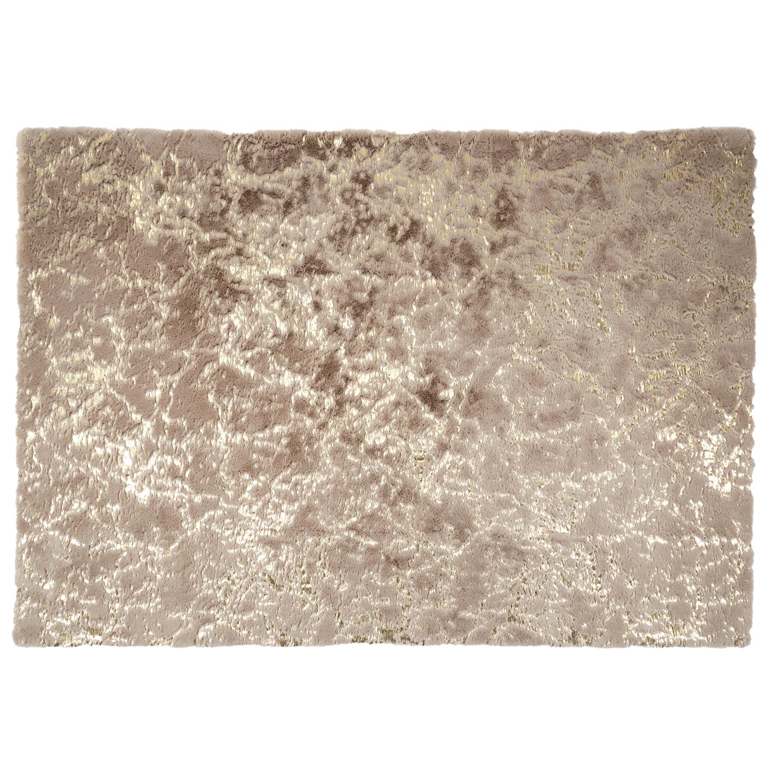 Prachtig superzacht langharig teddy tapijt in de taupe kleur met gouden details.