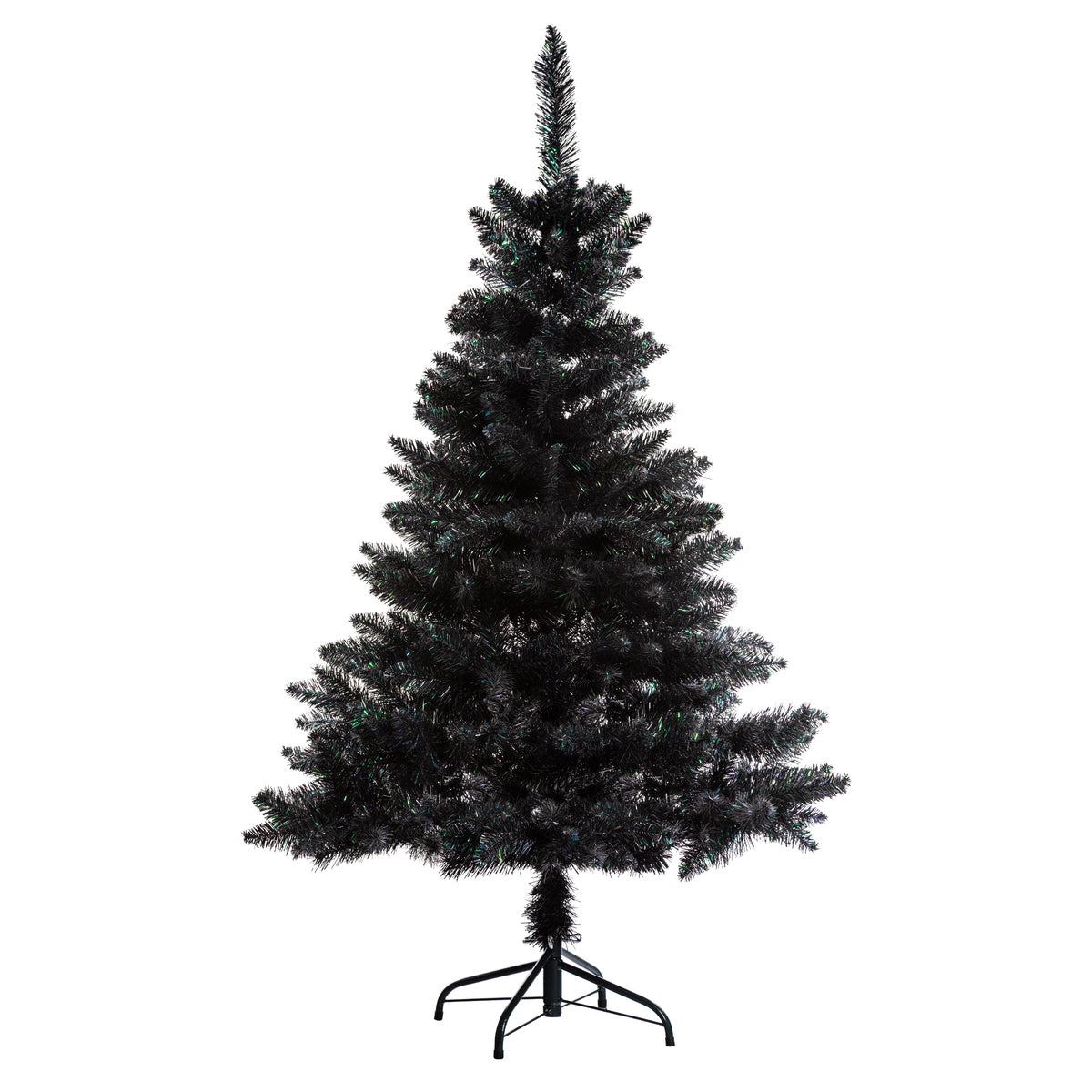 Onze volle zwarte kerstbomen hebben een prachtige subtiele groene reflectie! De takken ontvouwen zich gemakkelijk dankzij de automatische opening voor een snelle installatie. Metalen voet.