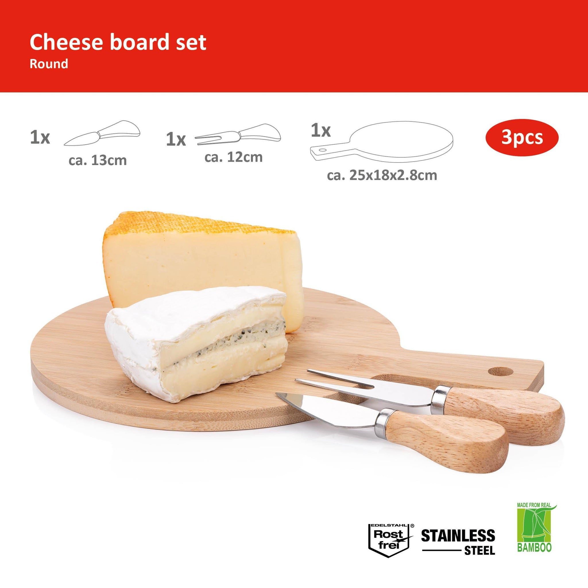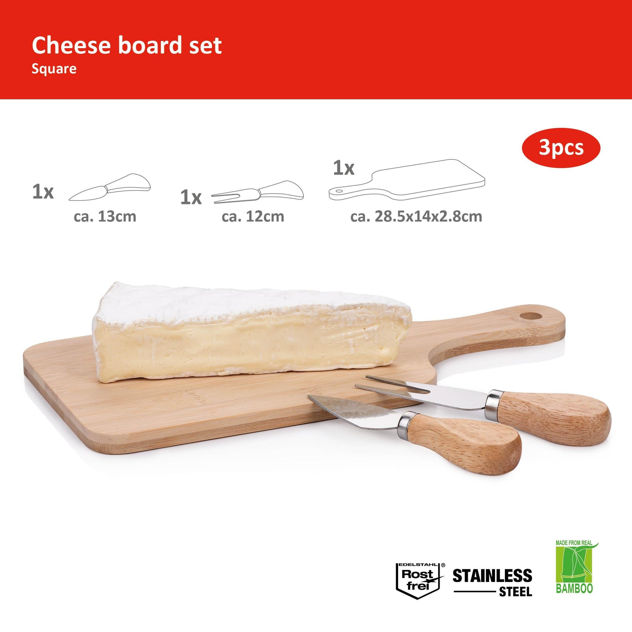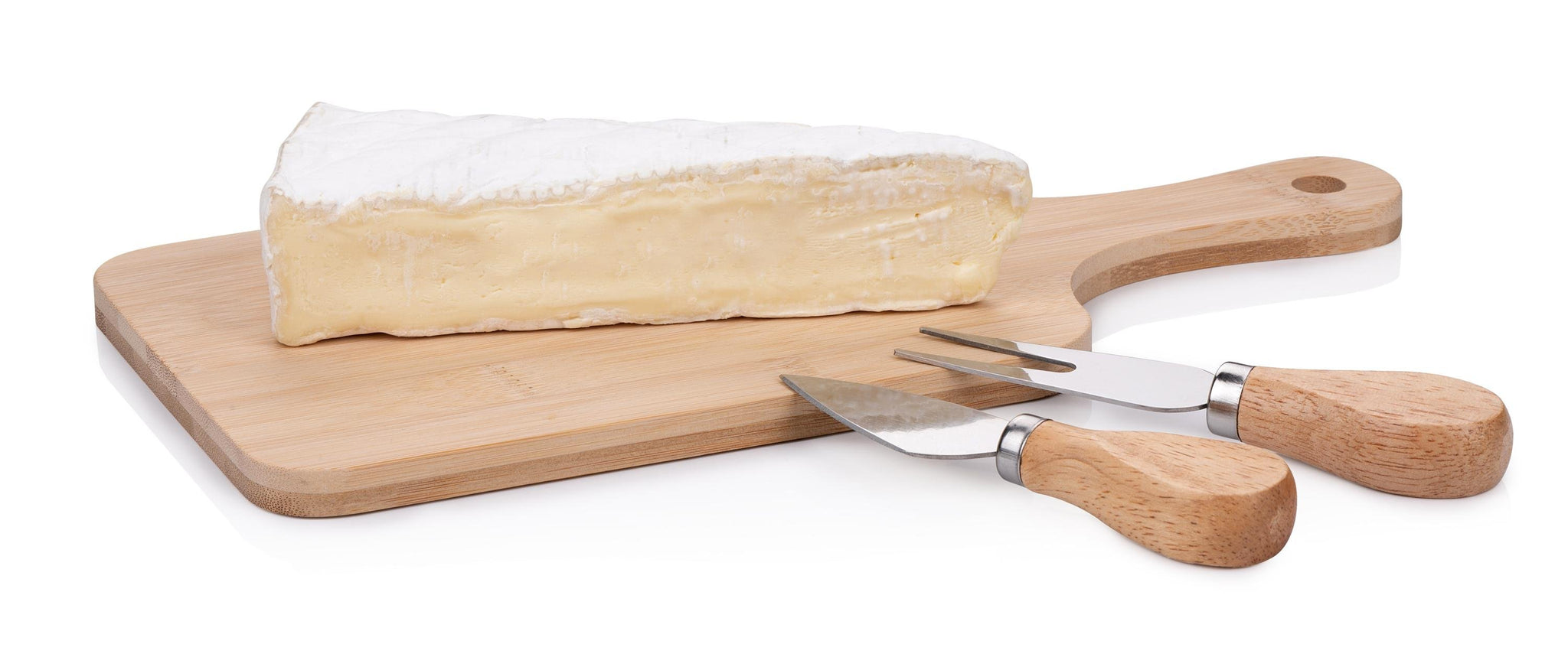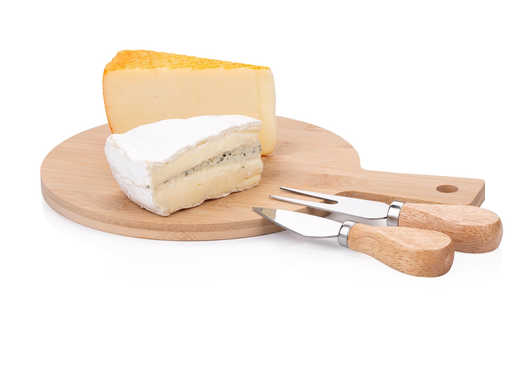 Mooie houten plank met kaasmessen. Ideaal voor alle soorten kazen.